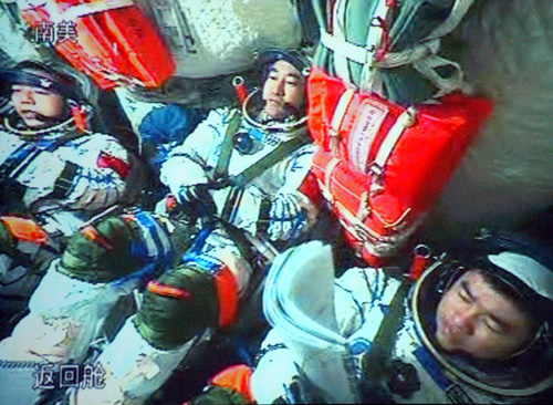 圖:神舟七號(hào)返回在即航天員穿好艙內(nèi)服