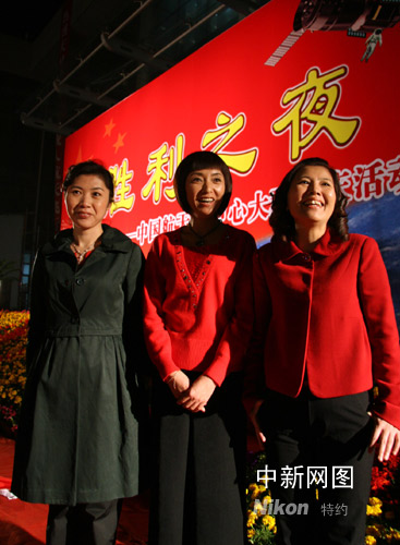 中國“神舟”七號(hào)載人航天飛行二十八日獲得圓滿成功,圖為喜笑顏開的三位航天員妻子,從左至右分別是景海鵬的妻子張萍,翟志剛的妻子張淑靜以及劉伯明的妻子張瑤。中新社記者 齊彬 攝