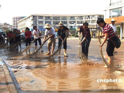 截至10月2日下午13時(shí),邕江南寧市邕寧區(qū)蒲廟河段水位為70.54米,比9月30日最高水位71.96米下降1.42米,洪水逐漸消退。當(dāng)?shù)馗鳈C(jī)關(guān)單位干部職工放棄國慶休假,投入到清掃垃圾、清除淤泥和噴灑消毒劑等災(zāi)后恢復(fù)工作中。劉秋明 攝