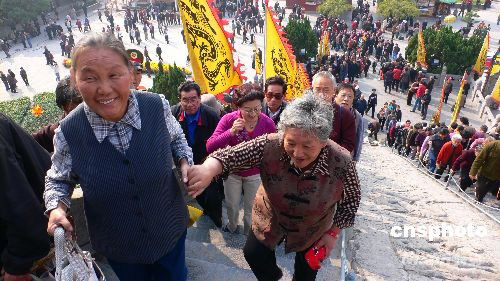 圖:老年朋友歡聚開封 登高望遠(yuǎn)歡重陽