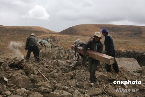 圖:西藏當(dāng)雄地震災(zāi)區(qū)的牧民開始重建家園