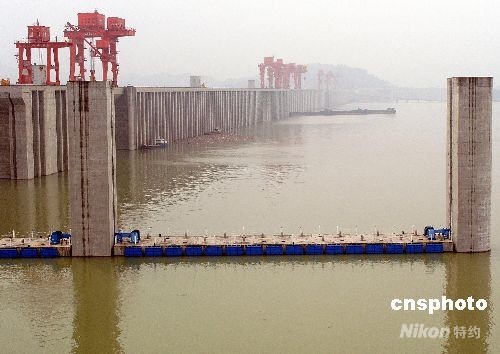 2008年10月7日,經(jīng)過近10天持續(xù)不斷地蓄水,三峽工程大壩壩前水位達到155.5米,并保持在該水位以上運行,實現(xiàn)了2008年汛后先期蓄水至156米水位的目標,是否向175米水位抬升尚需再檢測并研究三峽大壩運行情況、三峽庫區(qū)地質(zhì)災(zāi)害狀況等之后再做決定。按設(shè)計要求,三峽工程分135米、156米、175米三個水位進行蓄水。此前,三峽工程已于2006年、2007年兩次蓄至156米水位高程。中新社發(fā) 劉君鳳 攝