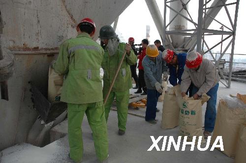 河北邢臺(tái)三鹿乳業(yè)有限公司沙河分公司封存的2噸問題奶粉近日在該廠逐步實(shí)施銷毀,這標(biāo)志著河北省使用大型水泥熟料生產(chǎn)線銷毀問題乳制品的方案開始實(shí)施。新華社發(fā)(崔懷綱攝)