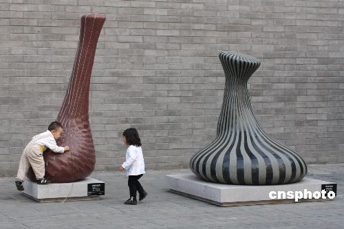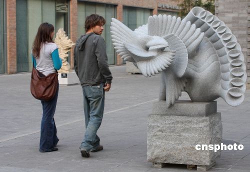 10月14日,不少游客在今日美術(shù)館欣賞數(shù)碼石雕。近日,以“科技與藝術(shù)的完美交融”為主題的數(shù)碼石雕全國巡展在北京今日美術(shù)館拉開帷幕。這些作品首先由美國藝術(shù)家使用三維數(shù)字設(shè)計(jì)解決方案,在電腦虛擬的環(huán)境中進(jìn)行設(shè)計(jì)、分析、模擬和建模。而后,中國的雕刻師們參照三維快速成形打印設(shè)備制作的物理模型,以手工雕刻完成。中新社發(fā) 吳芒子 攝