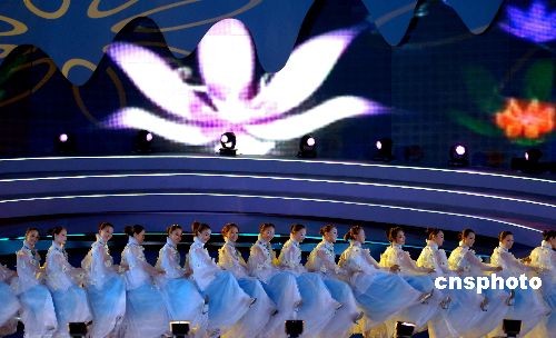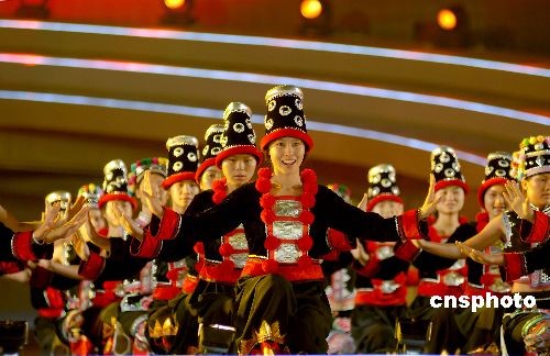 10月22日,廣西“南寧國際民歌藝術(shù)節(jié)開幕式晚會——大地飛歌·2008”在南寧民歌廣場上演。原生態(tài)的《壯族大歌》、《苗族大歌》、《侗族大歌》、《瑤族大歌》,經(jīng)過重新編排后更具魅力。除了廣西本地民歌以外,還有來自東盟各國的經(jīng)典民歌激情上演。整個(gè)舞臺流光溢彩,聲色動人。中新社發(fā) 彭寰 攝