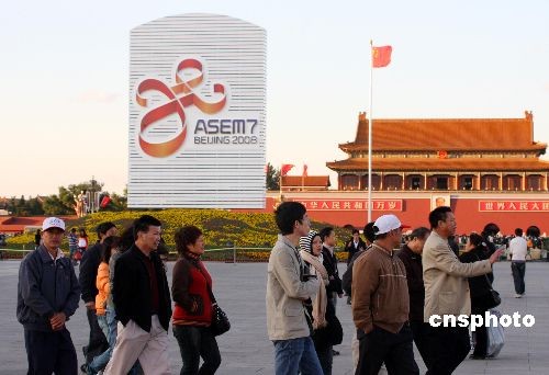 10月23日,北京天安門廣場一派祥和,以亞歐首腦會議為主題的花壇光彩奪目,第七屆亞歐首腦會議將于10月24日至25日在京舉行,這是繼2008奧運(yùn)會后北京舉辦的一次重要的國際性盛會。中新社發(fā) 吳芒子 攝
