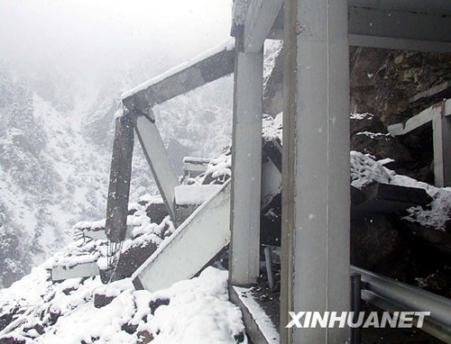 川藏公路然烏溝防雪走廊被暴風雪摧毀(10月28日攝)。