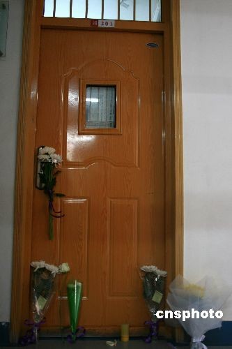 2008年10月29日下午,中國政法大學師生在慘案發(fā)生地點法大端201教室擺放鮮花寄托對遇難老師的沉痛哀思。28日晚上6點40分左右,中國政法大學昌平校區(qū)端升樓201室內(nèi),該校法學院教授程春明在上課前,被一個手持菜刀沖入教室的人砍倒,隨后不治身亡。據(jù)該校目擊學生稱,嫌疑人為該校政管學院大四學生。中新社發(fā) rain 攝