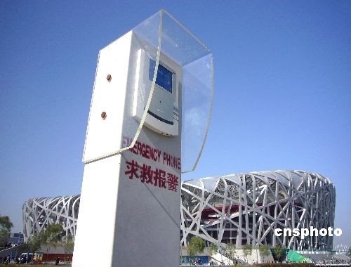 2008年11月2日,北京國家體育場“鳥巢”四周設立了求救報警器,確保中外游客在遇到突發(fā)情況時迅速報警,全方位的保障奧運中心區(qū)游客的人身安全。 中新社發(fā) 玉龍 攝