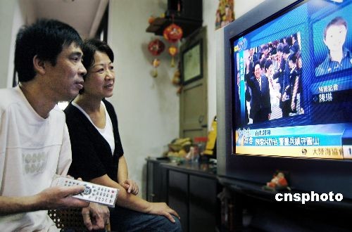 11月3日,僑鄉(xiāng)泉州市民在電視機(jī)前收看陳云林會長抵達(dá)臺灣桃園機(jī)場的實(shí)況轉(zhuǎn)播。今日,海峽兩岸關(guān)系協(xié)會會長陳云林率海協(xié)會協(xié)商代表團(tuán),展開在臺灣的歷史性訪問行程。中新社發(fā) 傅丹丹 攝