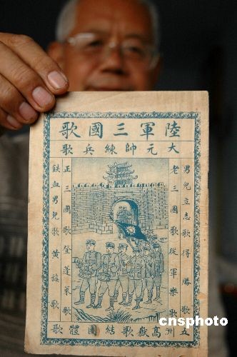 2008年11月4日,一本塵封80年民國(guó)年間出版的張作霖《大元帥練兵歌》在山東濱州無(wú)棣面世。該書(shū)1928年由天津河?xùn)|特制、聚文山房發(fā)行!洞笤獛浘毐琛烦氖敲駠(guó)共和,夸的是本軍統(tǒng)帥,說(shuō)的是當(dāng)兵意義,真實(shí)記錄了奉軍出操、練兵、行軍、打仗的場(chǎng)景。令人驚奇的是,被毛澤東反復(fù)推薦的紅軍歌曲《三大紀(jì)律八項(xiàng)注意》的曲調(diào),竟是張作霖的《大元帥練兵歌》。中新社發(fā) 梁寶海 攝