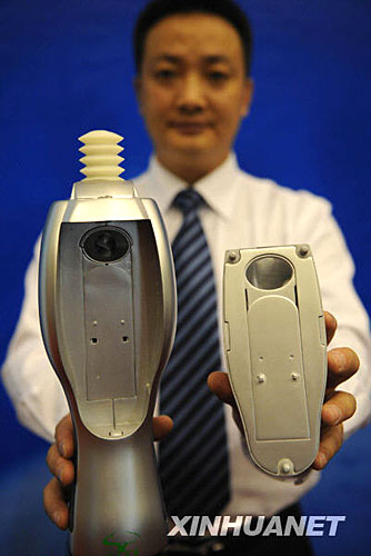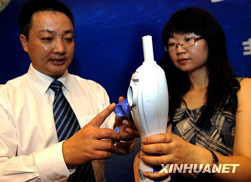 發(fā)明人金徐凱在展示采挖式太空馬桶。新華社記者 周文杰 攝