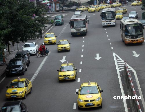 十一月五日,在重慶市菜園壩火車站附近的的士候車站,?恐簧俪鲎廛嚨却忻癯俗H涨宄,重慶主城部分出租車因受阻不能正常營(yíng)運(yùn),給當(dāng)?shù)厝罕姵鲂性斐刹恍±щy。當(dāng)?shù)卣谌兆龀鼍o急部署,采取多項(xiàng)有力措施,積極解決出租車停運(yùn)事件。目前,重慶主城區(qū)八千余輛出租車已全面恢復(fù)營(yíng)運(yùn)。