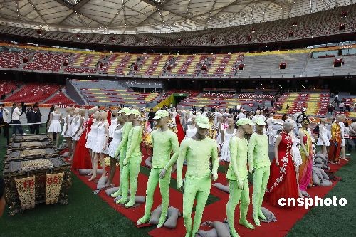 圖:“鳥巢”展示奧運會開幕式服裝道具