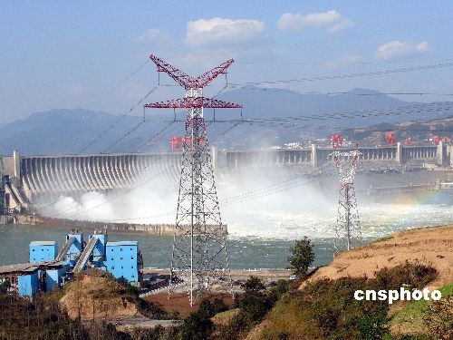 2008年11月8日,泄洪中的三峽工程。連日來(lái),長(zhǎng)江上游持續(xù)降雨導(dǎo)致長(zhǎng)江發(fā)生罕見(jiàn)的冬汛,三峽工程大壩首次在冬季開(kāi)閘泄洪并已持續(xù)數(shù)日。中新社發(fā) 劉君鳳 攝