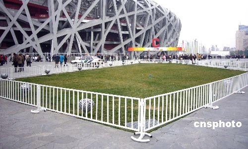 圖:“鳥巢”廣場綠地新增護欄