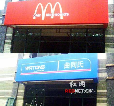 紅網(wǎng)長沙11月9日訊(記者 耿紅仁)“這擦邊球打得很牛很雷人,真是山寨店鋪大薈萃啊!”8日晚上,網(wǎng)友“鍋爐工”在紅網(wǎng)論壇發(fā)帖爆料,稱在網(wǎng)上看到一個(gè)題為《對不起,我真的被雷到了,南京最雷人山寨店群》的圖片帖,圖片顯示在南京文安街上,林立的店鋪清一色是山寨名牌店鋪,其中屈臣氏、必勝客、麥當(dāng)勞、李寧、星巴克、哈根達(dá)斯等分別被克隆成曲同氏、必勝糊、李明、巴克星、哈根波斯等。
