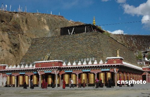 四川康定塔公鄉(xiāng)各日瑪林扎西寺的左側(cè)有一座“神山”,當?shù)厝朔Q為“經(jīng)幡山”,中國農(nóng)歷每月十五,當?shù)孛癖娮园l(fā)前往扎西寺朝拜神山進行祈禱。中新社發(fā) 肖龍聯(lián) 攝