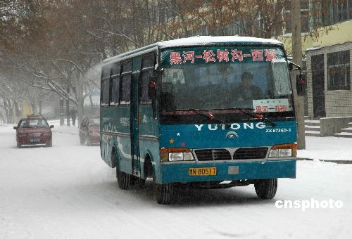 11月15日,受強冷空氣的影響,黑龍江省出現(xiàn)一次降雪和降溫,其中黑河、伊春、綏化北部有中到大雪,哈爾濱東北部、鶴崗有小到中雪,其它地區(qū)為小雪天氣。黑龍江省氣象臺繼續(xù)發(fā)布道路結冰黃色預警信號。中新社發(fā) 邱齊龍 攝