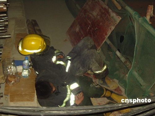 2008年11月15日下午,浙江省杭州市蕭山區(qū)風情大道地鐵1號線施工現(xiàn)場發(fā)生重大塌陷事故,救援人員徹夜奮戰(zhàn)抽取積水。中新社發(fā) 王磊 姜越潮 攝
