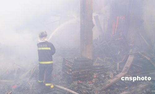 11月16日上午8時,江蘇蘇州市相城區(qū)元和街道建元路華東家具城5號館后面的家具廠倉庫突發(fā)火災(zāi),蘇州市蠡口消防中隊接警后迅速趕到現(xiàn)場進行撲救,經(jīng)過近兩個小時的奮戰(zhàn),將大火撲滅。目前,火災(zāi)原因還在調(diào)查中,暫無人員傷亡報告。中新社發(fā) 蘇民 攝