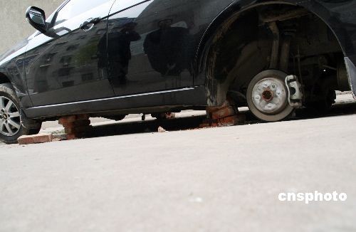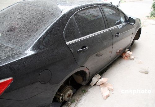 11月17日,河南省漯河市建設(shè)路豫苑小區(qū)內(nèi)一輛上海通用轎車被盜走了3個(gè)輪胎。目前警方正在調(diào)查此案,但保險(xiǎn)公司表示對(duì)此類案件不予賠伏。中新社發(fā) 李慧宇 攝
