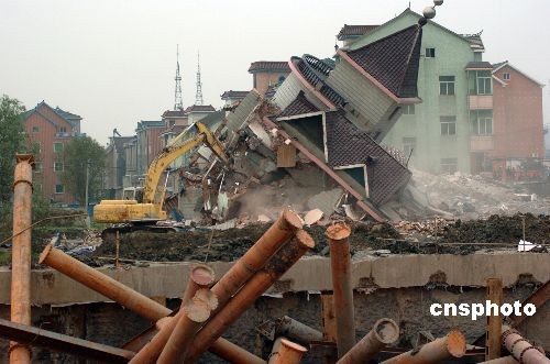 11月17日,浙江杭州地鐵塌陷事故搶險(xiǎn)救援已進(jìn)入第三天,截至當(dāng)天下午3點(diǎn)40分,事故已造成7人死亡,14人失蹤。為有利于搶險(xiǎn)救援工作的開展,事故附近的房屋已經(jīng)被全部推倒。中新社發(fā) 施健學(xué) 攝