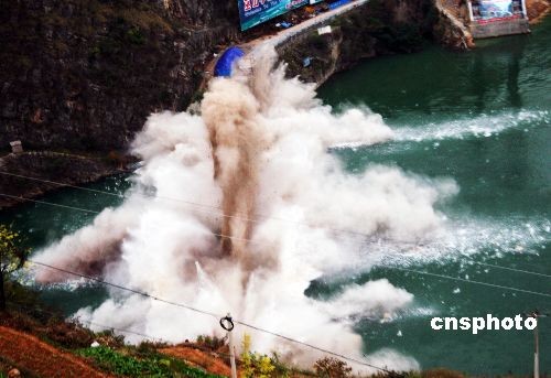 11月22日下午,位于重慶市巫山縣小三峽峽口的龍門大橋成功實施爆破拆除,這是三峽工程175米試驗性蓄水遲來的礙航清障最后一爆,也是三峽庫區(qū)首次采用水壓式爆破方案成功拆除的風景區(qū)景觀大橋。 龍門大橋位于國家級“五A”景區(qū)巫山大寧河——小三峽龍門峽口,全長197米,1987年建成使用。由于大橋屬我國第一座采用無平衡重轉體法施工的箱形拱橋,腹內空心,加之高水位淹沒橋墩,專家決定采取水壓式、中深孔及淺孔三種方式爆破,拱圈翻轉180度后碎入湖底,以確保爆破一次性成功、徹底,對風景區(qū)無殘留、污染,即使水位退至150米左右仍不影響大型旅游船只正常通行。中新社發(fā) 饒國君 攝