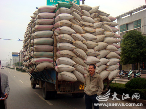 24日,新干縣交警在該縣城的金川南大道,查獲了一輛裝載谷殼,且車(chē)廂超高2米多的六輪農(nóng)用車(chē)。