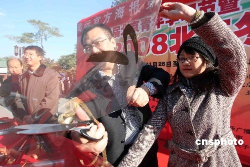 十一月二十九日,北京奧運會官方海報第一版底版銷毀儀式在北京地壇書市舉行。今天銷毀的奧運官方海報第一版底版,包括全套十六張奧運會官方海報和全套十六張殘奧會官方海報。中新社發(fā) 任海霞 攝