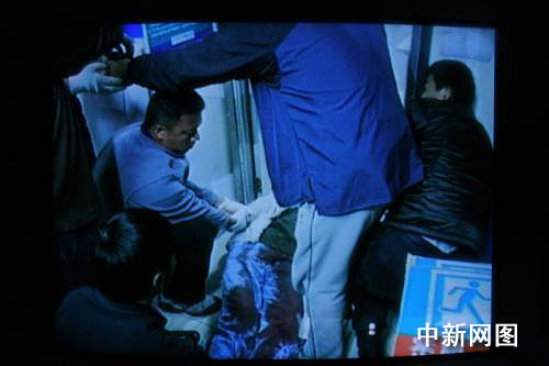 11月29日上午9時37分,一男子手持匕首在昆明市龍泉路家樂福超市持刀刺傷2名顧客和一名促銷員,隨后將一名趕來現(xiàn)場救治傷員的醫(yī)護(hù)人員挾持。經(jīng)查,該男子名叫陸志文,39歲,此前曾有犯罪前科。圖為該男子被警方擊斃。