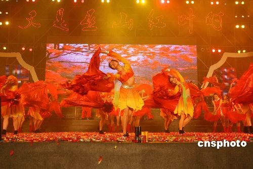 12月1日晚,中國(guó)重慶長(zhǎng)江三峽第二屆國(guó)際紅葉節(jié)正式開(kāi)幕,來(lái)自國(guó)內(nèi)外上萬(wàn)余嘉賓及游客共同觀看演出。圖為中國(guó)重慶長(zhǎng)江三峽第二屆國(guó)際紅葉節(jié)開(kāi)幕晚會(huì)現(xiàn)場(chǎng)。中新社發(fā) 劉洋 攝