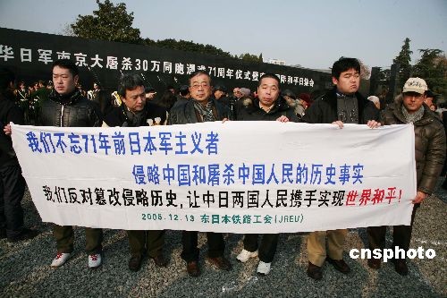 13日上午10時(shí),凄厲的警報(bào)在南京城上空拉響,江蘇省暨南京市各界代表以及海內(nèi)外和平友好人士近5000人在侵華日軍南京大屠殺遇難同胞紀(jì)念館舉行集會,悼念南京大屠殺30萬同胞遇難71周年,日本和平友好人士應(yīng)邀參加。中新社發(fā) 鐘山 攝