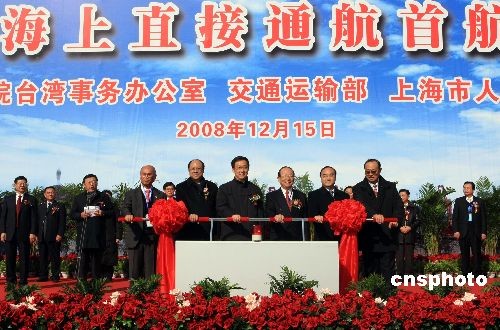 12月15日,海峽兩岸海上直接通航首航儀式在上海洋山港舉行,中遠公司的“遠河”號和中海公司的“新非洲”號從洋山港啟航執(zhí)行首航任務(wù)。當日,海峽兩岸海上、空中直航及直接通郵在兩岸同步啟動。中新社發(fā) 湯彥俊 攝