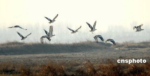 12月14日,120多只大鴇出現(xiàn)在河北滄州海興縣農(nóng)田中。大鴇屬國家一級重點保護(hù)動物,雖然分布很廣,但在世界范圍內(nèi)的種群數(shù)量都普遍處于下降趨勢。大鴇在我國的種群數(shù)量曾經(jīng)是相當(dāng)豐富的,但近年來數(shù)量已經(jīng)變得相當(dāng)稀少,估計目前總數(shù)僅有300—400只。據(jù)了解,這么大集群數(shù)量是近年來所罕見的。中新社發(fā) 王少華 攝