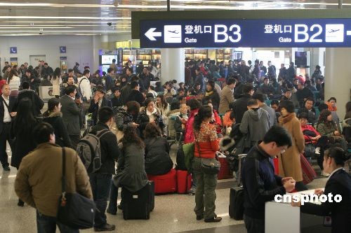 成都雙流國(guó)際機(jī)場(chǎng)12月16日再度遭受濃霧天氣襲擊,機(jī)場(chǎng)被迫關(guān)閉3個(gè)多小時(shí),直接造成109個(gè)進(jìn)出港航班延誤,其中出港74個(gè),進(jìn)港35個(gè),并使18個(gè)出港航班被迫取消,導(dǎo)致近1萬(wàn)名出港旅客受阻于機(jī)場(chǎng),不能按時(shí)飛往目的地。雙流機(jī)場(chǎng)及時(shí)向全場(chǎng)發(fā)布了二級(jí)預(yù)警信號(hào)。中新社發(fā) 呂俊明 攝