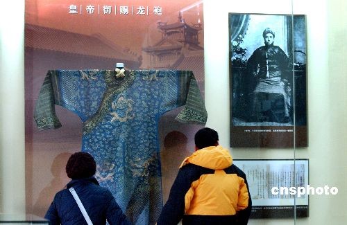 12月17日,奉系軍閥張作霖的九龍袍等文物首次在沈陽張氏帥府博物館展出。據(jù)館方工作人員介紹,這是末代皇帝溥儀因張作霖剿匪有功而賞賜給他的。中新社發(fā) 羅瀾 攝