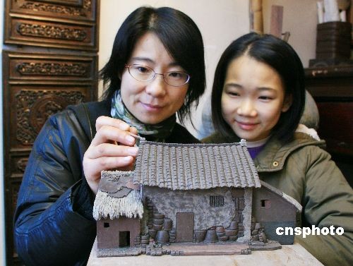 12月21日,市民正在欣賞紫砂雕塑《陶都特色民居》。為了再現(xiàn)昔日陶都特色建筑風(fēng)貌,江蘇宜興工藝美術(shù)師周定芳先后用4個(gè)多月的時(shí)間,以當(dāng)?shù)靥赜械淖仙澳嗨茉炝艘唤M造型各異的陶都特色民居,藝術(shù)地展示了宜興的地方風(fēng)情,觀者無(wú)不稱奇。宜興是我國(guó)著名的陶都,陶瓷業(yè)十分發(fā)達(dá),但生產(chǎn)過(guò)程中總會(huì)產(chǎn)生一些廢品,特別是過(guò)去窯爐較落后,廢品較多。在舊時(shí),當(dāng)?shù)厝罕姵S脧U棄或破碎的陶缸、陶甕、陶罐等作為建筑材料來(lái)建造墻壁等,造就出富有濃郁地方特色的陶都民居,成為宜興一絕。隨著時(shí)代的變遷,此種特色民居不斷被高樓大廈所替代,已越來(lái)越少。中新社發(fā) 丁煥新 攝