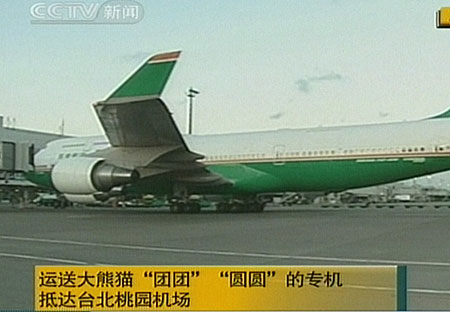 12月23日下午5時許,運送大熊貓“團團”“圓圓”的專機抵達(dá)臺北桃園機場。點擊觀看“團團”“圓圓”赴臺報道圖片專輯