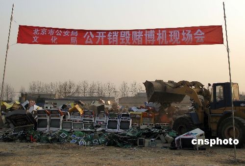 十二月二十六日,北京警方對收繳的非法賭博機進行銷毀。中新社發(fā) 任海霞 攝