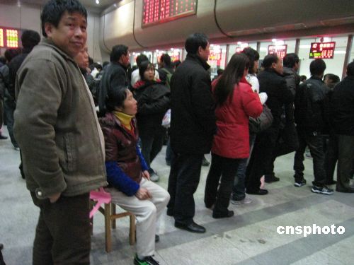 運輸部門近日表示,2009年春運將從一月十一日開始至二月十九日結(jié)束。據(jù)預(yù)測,在40天里浙江省將有近1.946億的旅客通過各種交通方式出行。受金融危機的影響,目前已經(jīng)無工可做的打工者選擇了提前返鄉(xiāng),以致浙江發(fā)往湘、鄂、黔、贛等地的車次出現(xiàn)“一票難求”的現(xiàn)象。中新社發(fā) 孫寧亞 攝