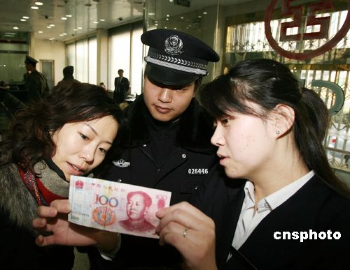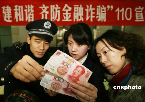 1月10日,北京110迎來第十三個宣傳日。北京崇文區(qū)警方向市民講解識別假幣的知識。中新社發(fā) 胡建強(qiáng) 攝
