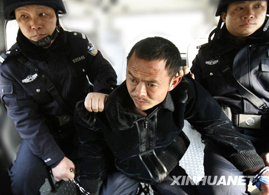 1月11日,公安部A級通緝令通緝的、在湖北隨州殺死8人的犯罪嫌疑人熊振林在武漢被警方抓獲。2009年1月4日晚,湖北省隨州市曾都區(qū)洛陽鎮(zhèn)發(fā)生一起特大兇殺案,共8人遇害,其中包括一名兩歲半的小孩,兇手作案后潛逃。警方隨后初步鎖定犯罪嫌疑人為熊振林,并安排大量警力追捕,對其進(jìn)行公開懸賞通緝。李江林 攝
