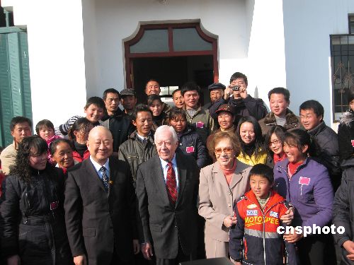 一月十四日,美國前總統(tǒng)吉米·卡特夫婦一行七人抵達(dá)武漢,并赴前中國國家主席李先念的故鄉(xiāng)湖北紅安縣參觀訪問。中國對(duì)外友協(xié)副會(huì)長李小林、湖北省副省長田承忠等陪同參訪。中新社發(fā) 艾啟平 攝