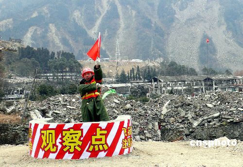 1月23日(臘月二十八),四川省都汶公路(都江堰市至汶川縣)漩口鎮(zhèn)段,一名飛石路段安全觀察員在寒風中指揮車輛通行。在四川山區(qū)飛石路段,交通部門設(shè)置的安全觀察哨不僅保障了過往車輛的安全,還帶給人們陣陣溫暖。中新社發(fā) 張曉理 攝
