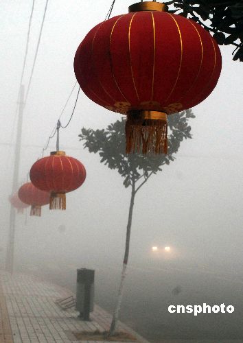 1月31日,山東省棗莊地區(qū)出現(xiàn)強(qiáng)濃霧天氣,能見(jiàn)度不足50米,當(dāng)?shù)貧庀蟛块T(mén)發(fā)布大霧黃色預(yù)警信號(hào),提醒市民安全出行。 中新社發(fā) 劉明祥 攝