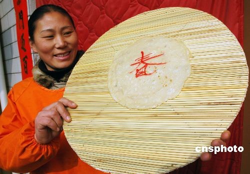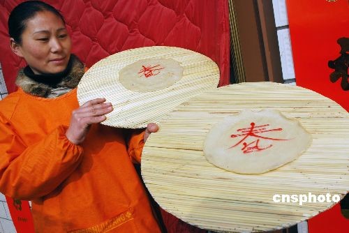 2月4日,河南湯陰城關鎮(zhèn)小北關村一農(nóng)戶展示制作的春餅。當日是農(nóng)歷二十四節(jié)氣中的立春,俗稱“打春”,吃春餅是中國立春的主要習俗。春餅用面粉搟成圓形的餅,經(jīng)烙制或油煎而成。中新社發(fā) 常中正 攝