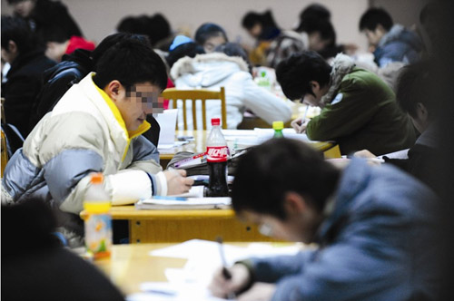 接連兩日,記者在該館自習(xí)室看到,眾多學(xué)子在伏案“奮筆疾書”,走近前去,才發(fā)覺他們大都是在專心致志地抄襲作業(yè),有的對著一張復(fù)印的政治試卷猛抄,有的摁著一本練習(xí)冊狂抄……從年齡看,以中學(xué)生居多,也有不少小學(xué)生。