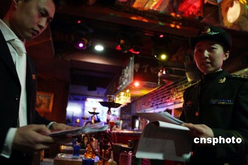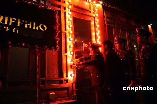 二月五日晚,北京西城消防支隊(duì)對(duì)轄區(qū)的什剎海酒吧街進(jìn)行安全檢查,杜絕火災(zāi)隱患。中新社發(fā) 任海霞 攝