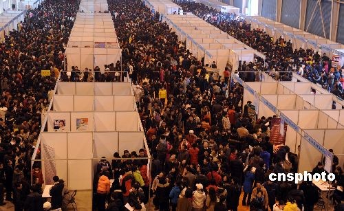 2009年2月6日,2009山東半島城市群春季人才交流暨黃河三角洲開發(fā)人才招聘大會在山東濰坊舉行,吸引數(shù)萬應(yīng)聘者到場。中新社發(fā) 王志德 攝